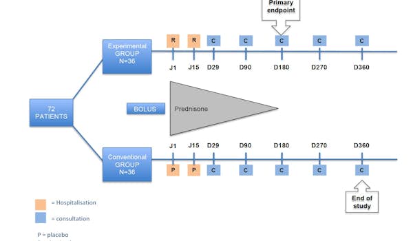 L’essai RENATO est un essai de phase 3, multicentrique, randomisé, contrôlé, en double aveugle, visant à évaluer l’efficacité de la pioglitazone pour promouvoir la récupération rénale dans la vascularite associée aux ANCA.
