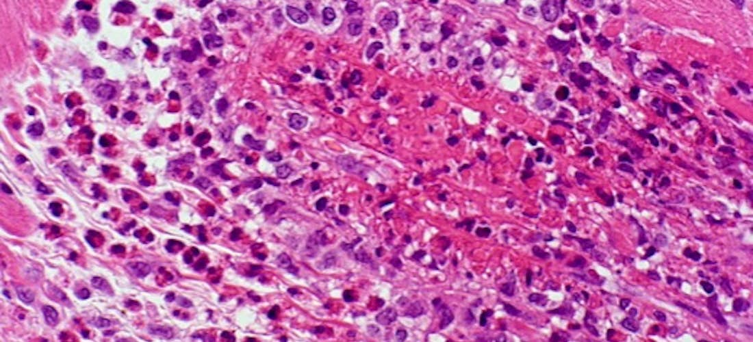 Une vascularite et une infiltration de la plèvre par des éosinophiles peuvent être observées. Le diagnostic de GEPA est rarement évoqué sur les constatations d’une vascularite à la biopsie pleurale (9).